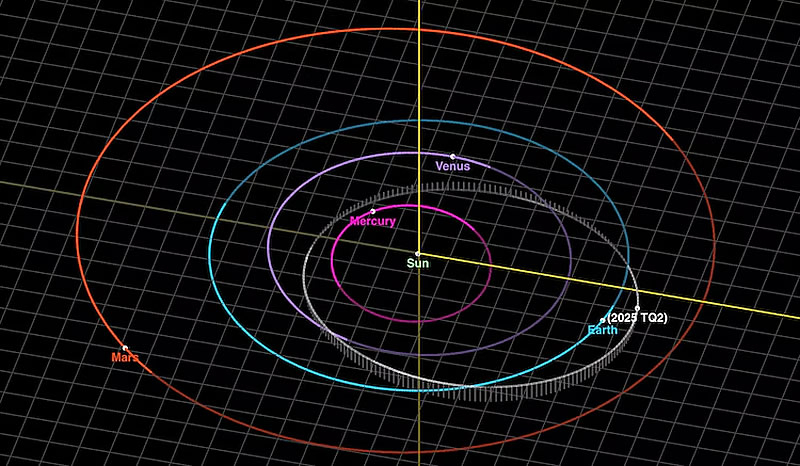 На схеме показано, насколько близко астероид 2025 TQ2 приблизился к Земле . Источник изображения: NASA