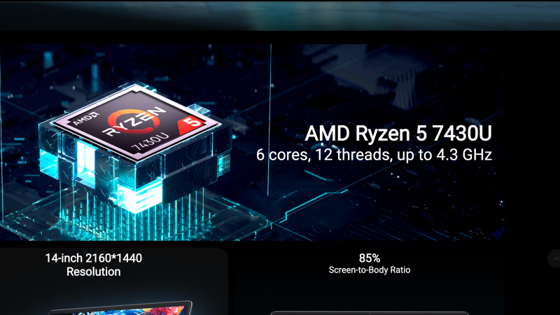 Портал Tom’s Hardware обратил внимание на архивную страницу сайта Chuwi с ноутбуком CoreBook X. На ней отображается модель ноутбука CoreBook X 7430U, а во всех рекламных материалах упоминается процессор Ryzen 5 7430U. Новая страница сайта с ноутбуком рекламирует лэптоп под названием CoreBook X Ryzen 5, но в URL-адресе страницы по-прежнему указано первоначальное название модели. Кроме того, компания изменила описание характеристик чипа, указав на использование Ryzen 5 с шестью ядрами и 12 потоками, работающего на частоте до 4,3 ГГц, не упомянув конкретно Ryzen 5 7430U, но всё же указав его тактовую частоту в режиме Boost.