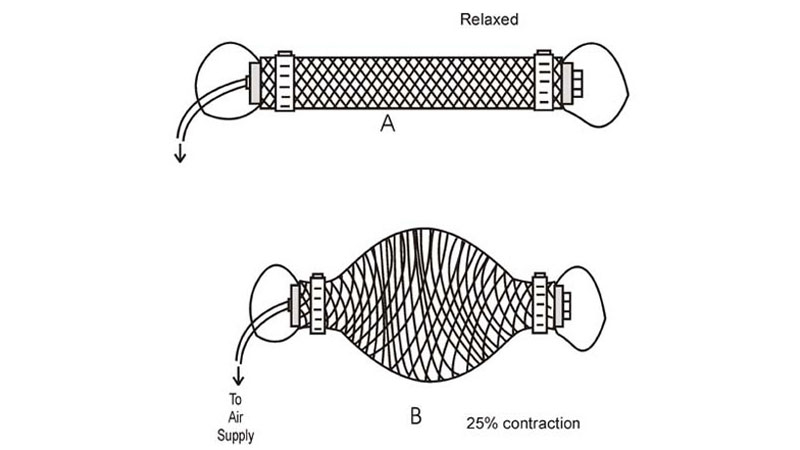 Интересное решение для имитации мышц более 70 лет назад придумал Джозеф Маккибен (Joseph McKibben). Его разработка была создана для ортопедии и хорошо легла на задачи робототехники. Актуаторы или пневматические приводы Маккибена представляют собой эластичные трубки в жёсткой оплётке, которая не даёт им много свободы, но зато имитирует сокращение мышц при закачке в трубки воздуха или жидкостей. Японские инженеры воспользовались этим и максимально точно воспроизвели анатомию конечностей собаки, чтобы обеспечить роботу передвижение.