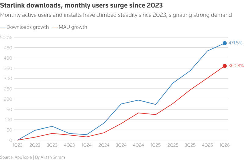 Число загрузок приложения Starlink и число его ежемесячно активных пользователей (MAU) по итогам I квартала более чем удвоились по сравнению с аналогичным периодом прошлого года. Рост MAU год к году составляет более 100 % уже четыре квартала подряд. В этом году SpaceX намеревается выйти на биржу, и ожидания инвесторов во многом зависят от Starlink — спутниковый оператор рассматривается как основной фактор, определяющий ценовую политику компании, стоимость которой составляет около $1,75 трлн. По итогам минувшего года выручка компании составила $11,4 млрд, гласят оценки экспертов.