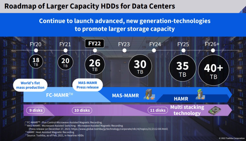 В перспективе Toshiba планирует дальнейшее увеличение ёмкости жёстких дисков за счёт внедрения технологий записи следующего поколения, включая магнитную запись с подогревом (HAMR), и увеличения количества пластин до двенадцати.