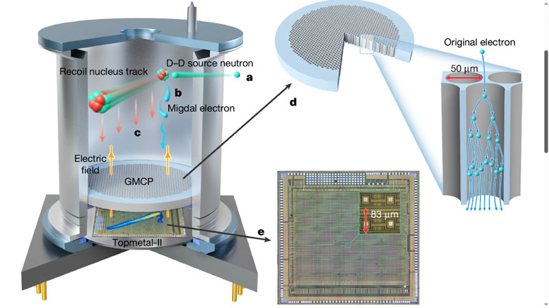 В эксперименте использовали пучок нейтронов, направленный в рабочий объём детектора. При ударе нейтрон передавал ядру импульс, вызывая короткий трек ядерной отдачи, а дополнительная электронная ионизация — эффект Мигдала — регистрировалась как вторичный каскад сигналов. Благодаря одновременному наблюдению обоих компонентов — ядерного и электронного — исследователи смогли идентифицировать события, соответствующие эффекту Мигдала, и отделить их от фона естественной радиоактивности и космического излучения.