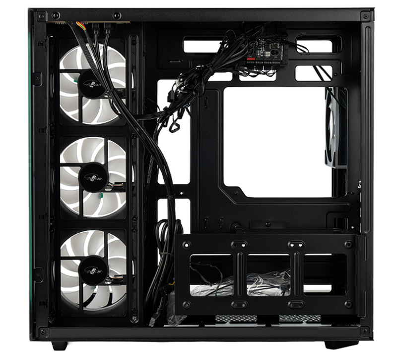 Корпус изготовлен из стали и стекла, что обеспечивает не только прочность, но и презентабельный внешний вид. Съёмные панели облегчают доступ ко всем компонентам, а противопылевой фильтр защищает внутренности от загрязнения и помогает поддерживать стабильную работу системы. Встроенная I/O панель располагает двумя портами USB 3.2 Gen 1 для быстрой работы с периферией, а для хранения данных предусмотрены отсеки под два жёстких диска 3,5″ и три SSD 2,5″.